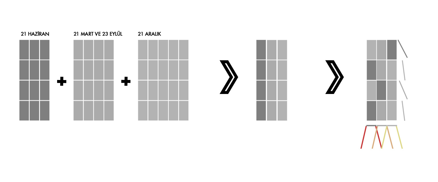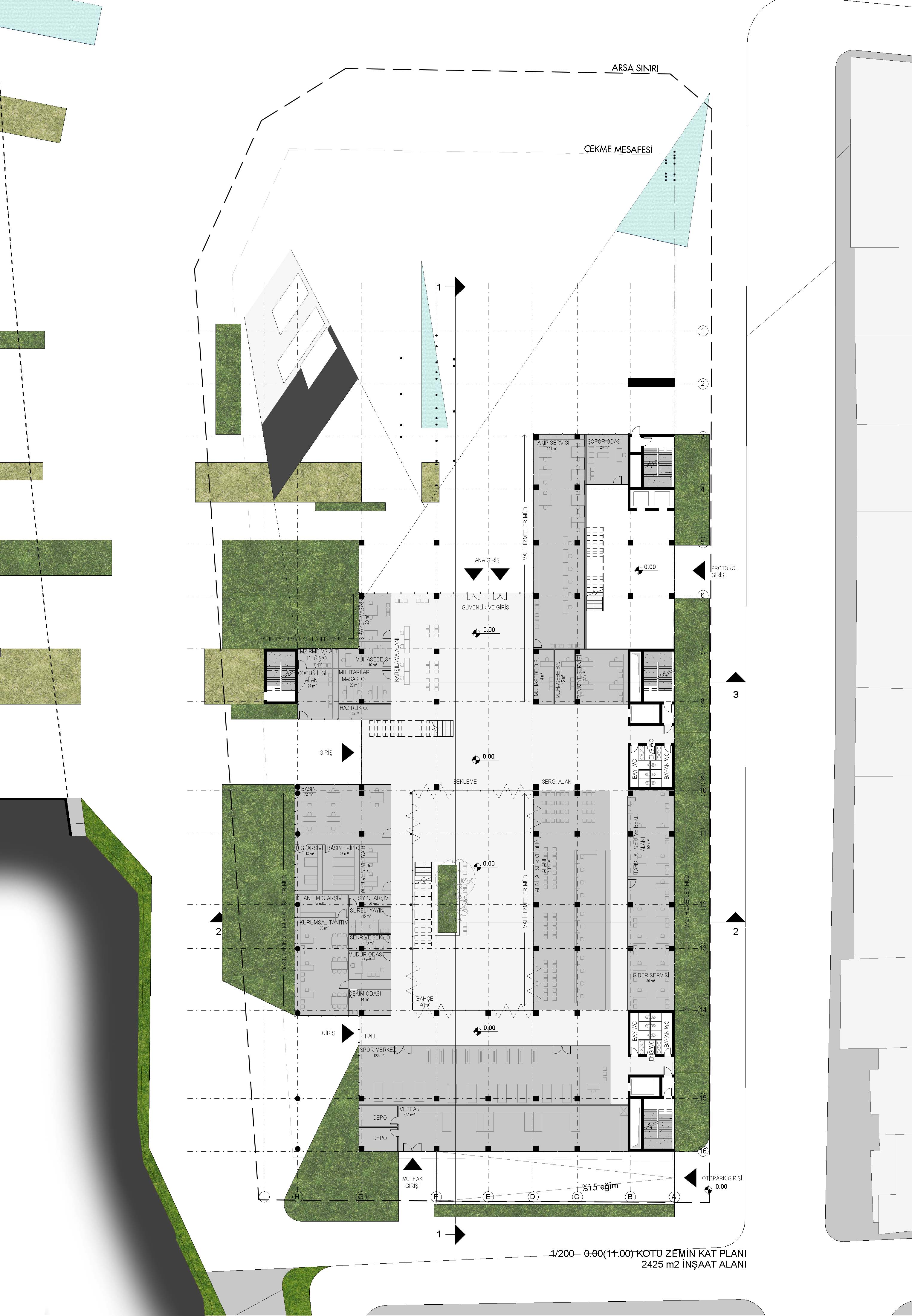 Yeni belediye binası ve meydanı; Gaziler Caddesi boyunca tasarlanan “yaya promenadı” ve “yeşil üstgeçit”in meydana uzanan yaya yolunun kesişiminde bulunmaktadır. Arsanın konumu ve kuzey-güney yönelimi dikkate alınarak, güney ışığından maksimum fayda sağlanacak şekilde doğu-batı aksında yerleştirilen üç kütle, bir ana sirkülasyon bloğu ile birbirine bağlanmıştır, iç ve dış mekan komforu zemin katlardaki geçiş ve boşluklar ile üst katlarda çeşitli cephe sistemleri ile sağlanmıştır. Ana yaya akışının Gaziler Caddesi üzerinden olacağı öngörülmüş, belediye meydanı arsanın kuzeyinde, oluşturulan yaya promenadına eklemlenecek şekilde tasarlanmıştır. Meydan yönünden ve yakın çevre alternatif yaya bağlatısı “yeşil üstgeçit” üzerinden alana yaklaşım kurgulanmış ve belediye binası zemin ve 1. Katı bu doğrultuda şeffaf, geçirgen, ulaşılabilir şekilde düşünülmüştür.