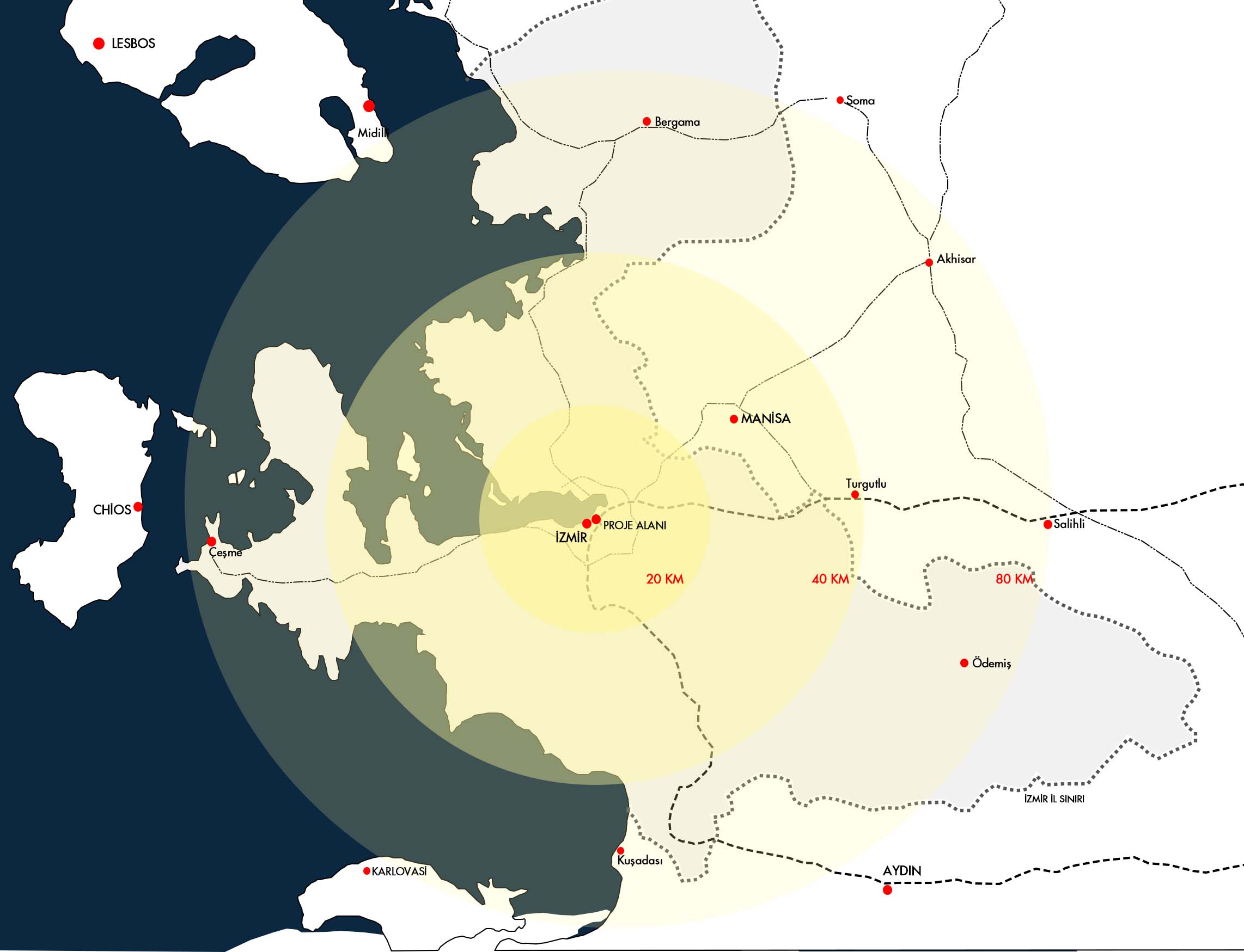 Konak Belediyesi yeni hizmet binası arsası, bir yanda Yeşildere Caddesi diğer yanda İzban ray hattı ile yaya erişimi tamamen kısıtlanmış, ciddi ulaşım problemleri olan, Yeşildere Caddesi boyunca uzanan Melez Deresi gibi bir yeşil potansiyelin yeterince değerlendirilemediği ve kentsel gelişimini tamamlayamamış, kalitesiz çevre ve yaşam alanı barındıran, eski sanayi tesis ve atölyelerinin bulunduğu, bir alanda yer almaktadır. Bu iki sınır – Yeşildere Caddesi ile birlikte Melez Deresi ve İzban hattı- yarışma alanını erişime kapattığı gibi Kocakapı, Yenidoğan ve Güney mahalleleri arasında da ciddi bir sınır-duvar oluşturmakta ve ulaşımı engellemektedir.