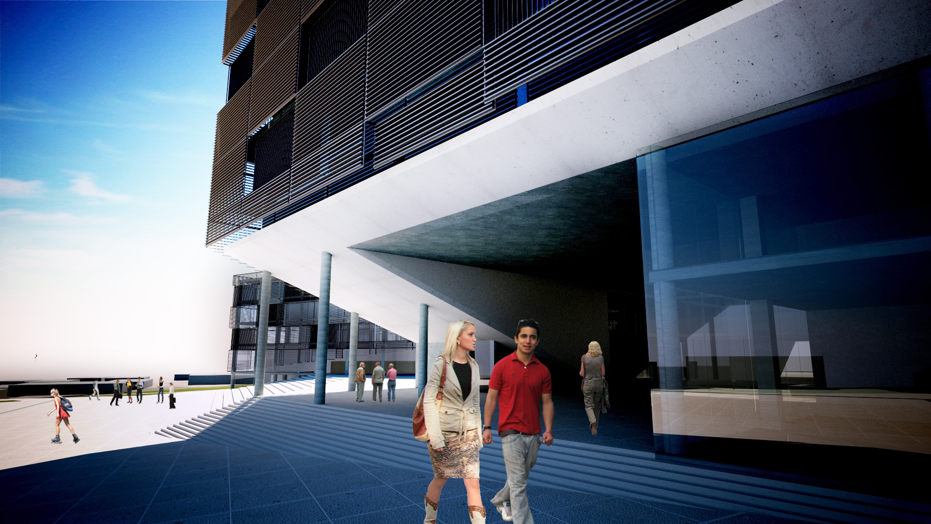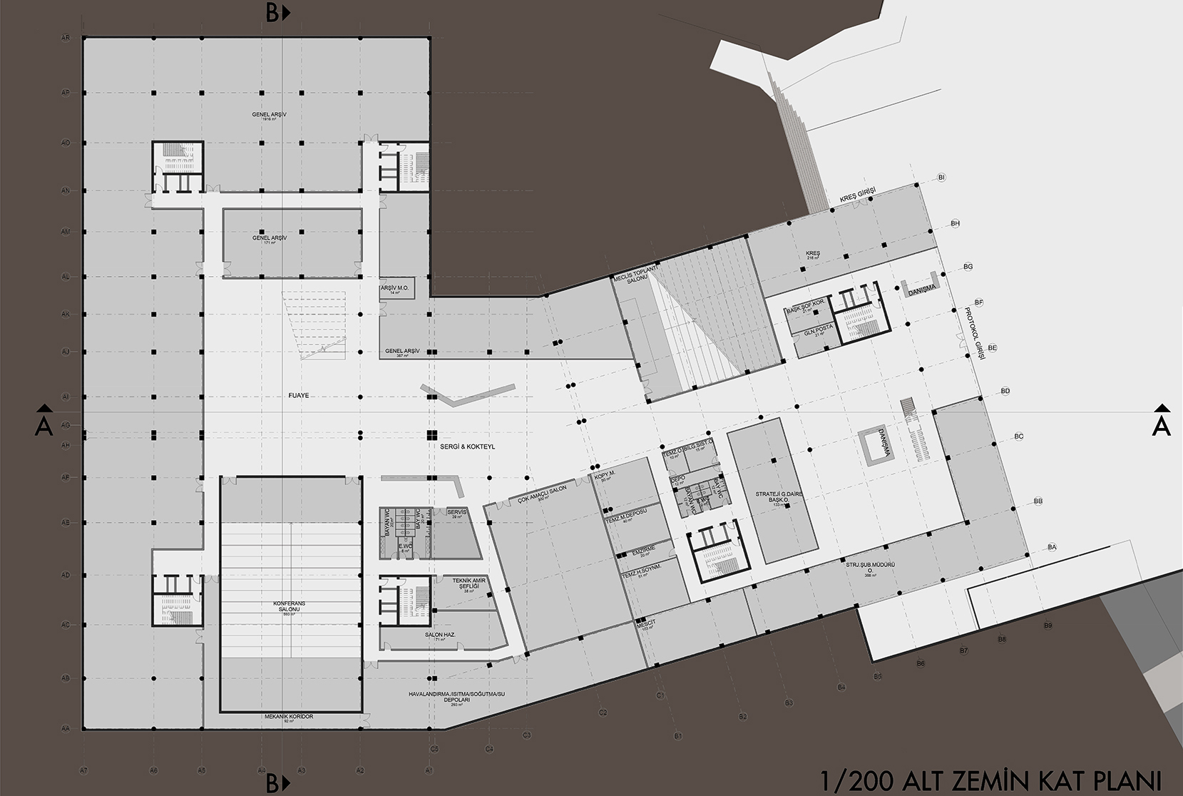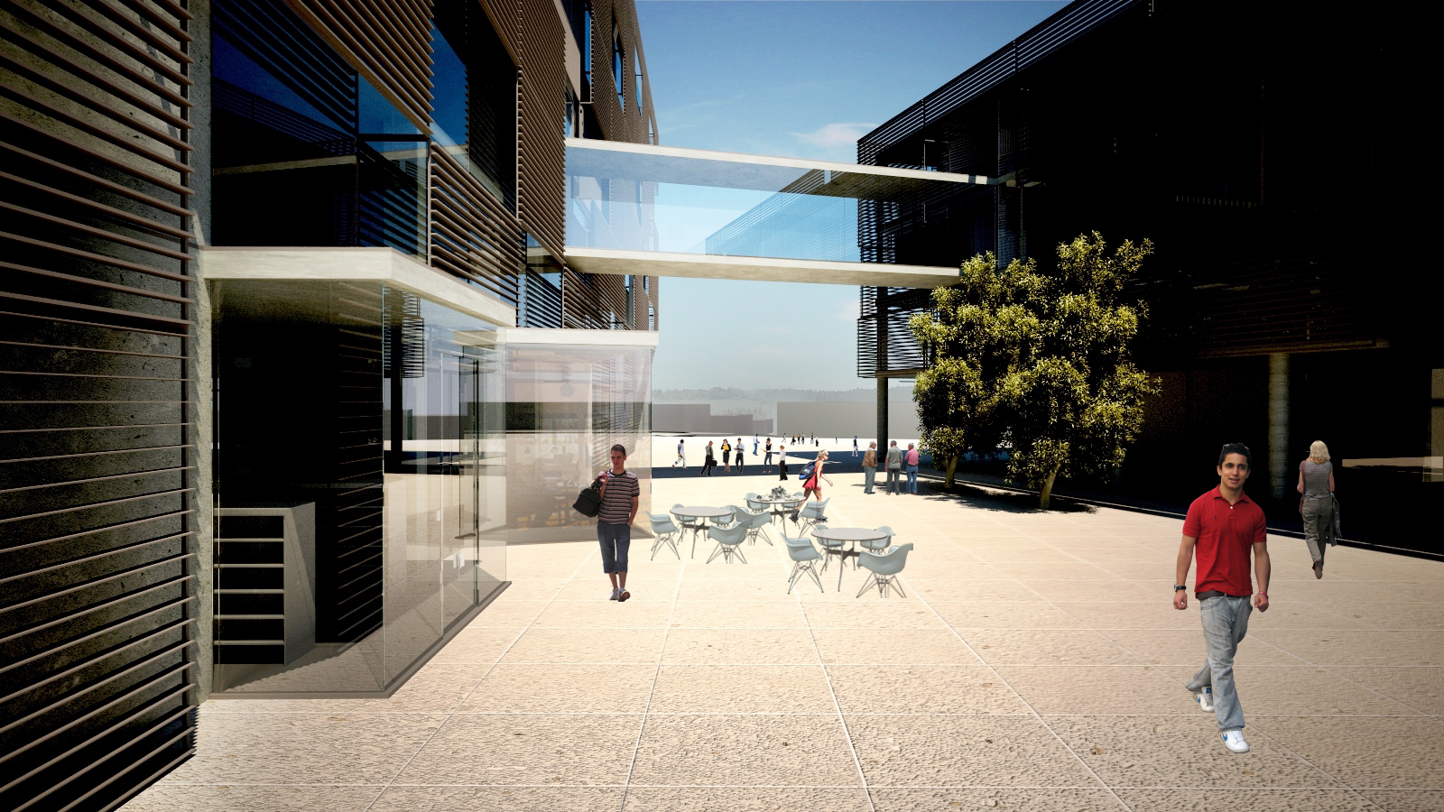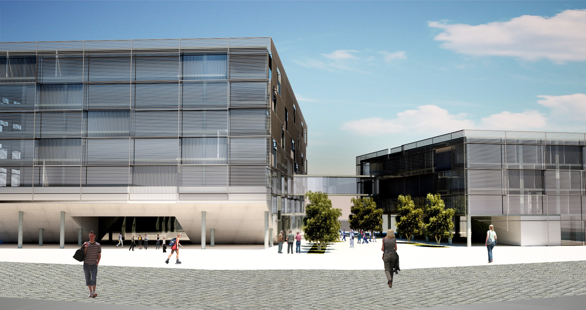 İki kütle arasındaki sokak, mevcut kent merkezinden gelen yaya trafiğini içeri alıp belediye meydanına ve yeşil aksın merkezine yönlendirmektedir. Bu sokakla birlikte zemin kat şeffaf, ulaşılabilir ve aktivite odaklı olarak planlanmıştır.