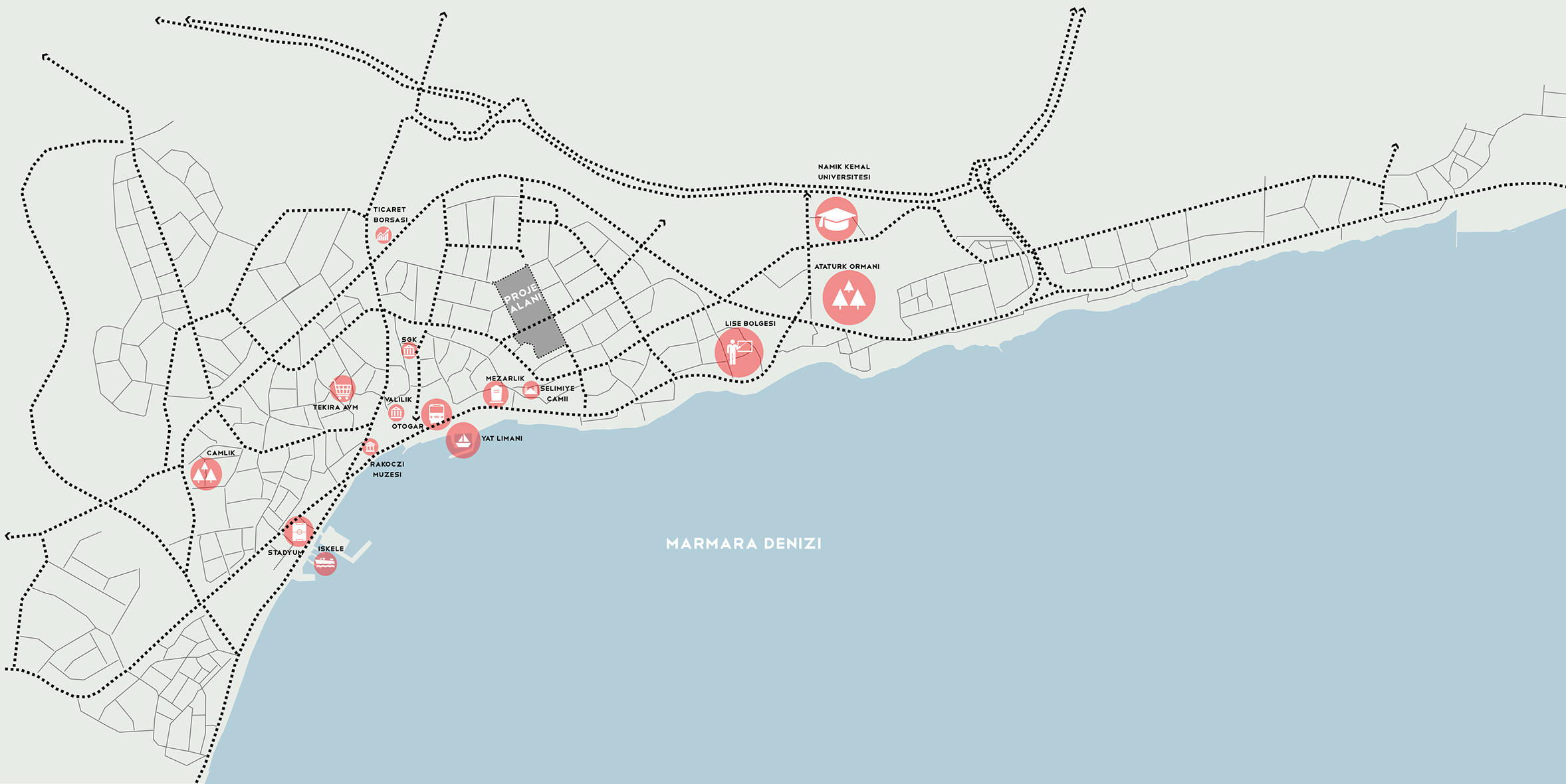 Proje konusu, İmar Planında kent merkezi olarak tanımlanan, Tekirdağ Büyükşehir Belediye Hizmet Binasının yapılacağı alanın da içinde bulunduğu yaklaşık 520.000 m2’lik alanın tasarlanmasıdır.