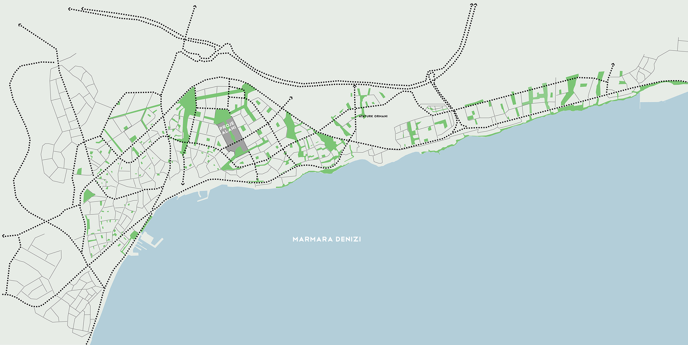 Bu sebeple tasarımda öncelikli olarak bu ulaşım-etkileşim ilişkileri incelenmiş, sorunlara yeşil-sürekli-yaya odaklı-şeffaf-aktif-çok sesli bir çözüm ortaya konmaya çalışılmıştır.