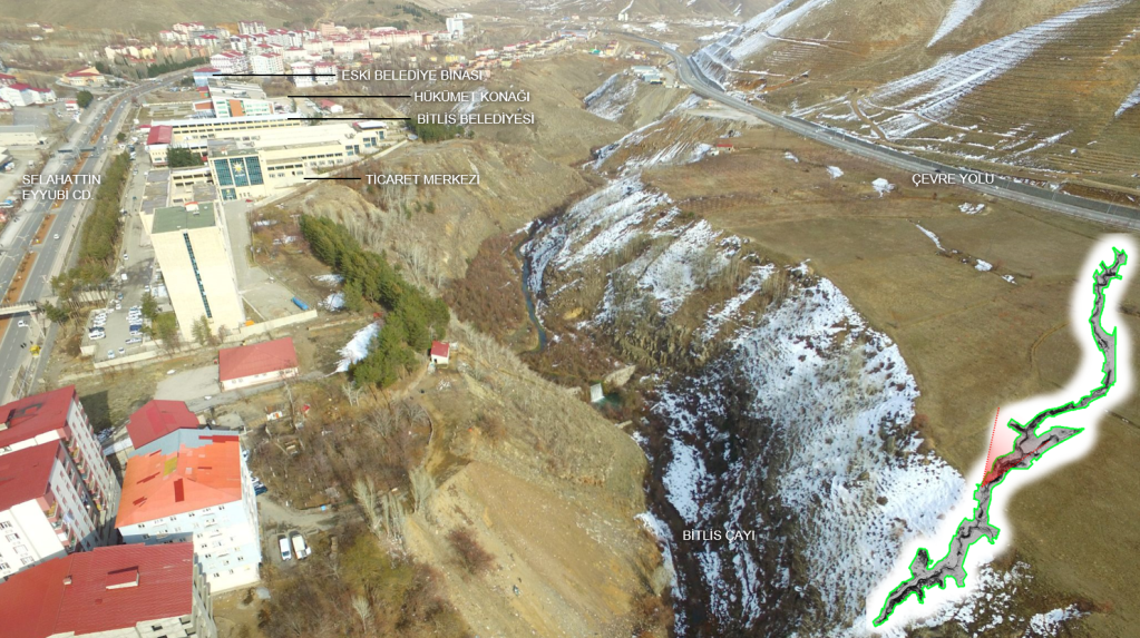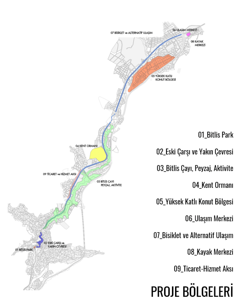 Bitlis Kentsel Tasarım Fikir Projesi, kentin bu coğrafi yapısı ile uyumlu, ve bu kentsel kimliği güçlendirecek şekilde şekillenmiştir. “Bitlis Çayı ve Vadisi” eski ve yeni kenti birbirine bağlayan, aynı zamanda da tüm bu yapıları destekleyen renklendiren bir aktif yeşil omurga olarak ele alınmıştır.