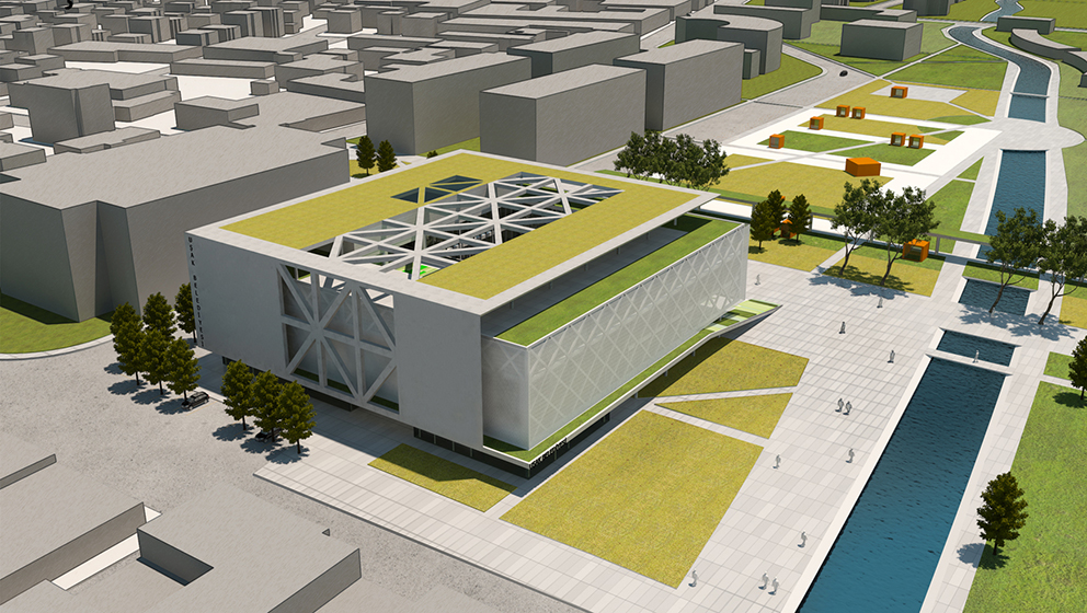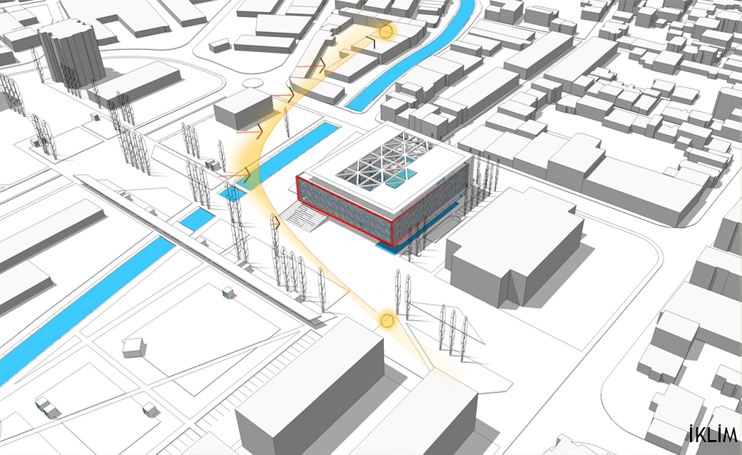 Dokuz Sele Deresi yeşil omurgasının ve yeni açılan kentsel koridorunun kesiştiği noktaya konumlanan belediye hizmet binası, birçok odağın birleştiği, önemli parametreleri kendisine eklemleyen kalp pozisyonuna gelmiştir.