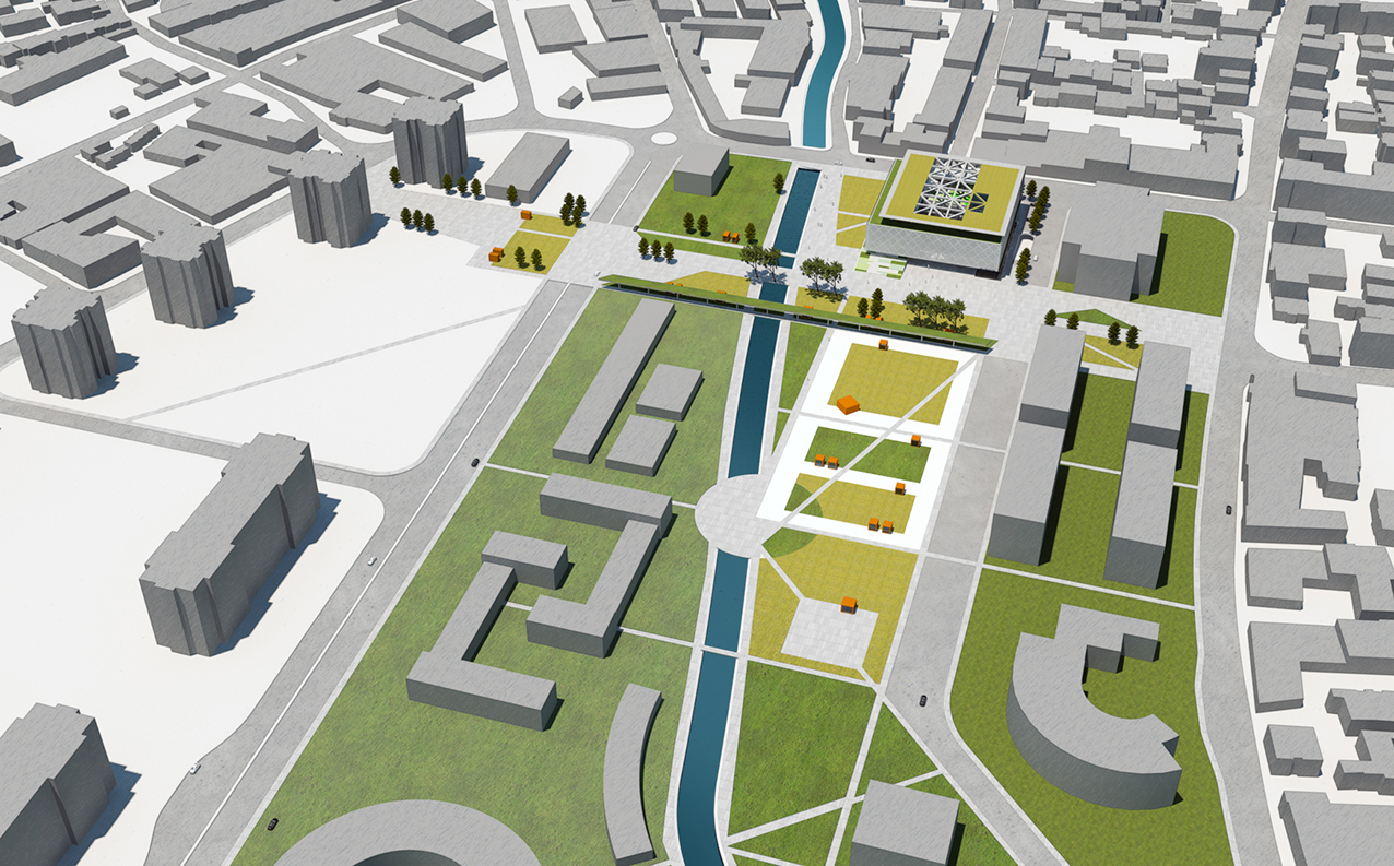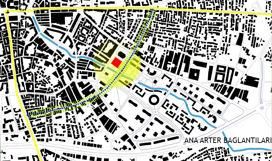 Bu odakları düşünerek yeni kent merkezi olarak planlanan alanın, eski kent merkezi ve en önemli bulvarlar arasında kalması dolayısıyla; iki bulvarla birden Gazi Bulvarı’ndan Ulu Camii’ye kadar uzanan kentsel dönüşüm alanının tam ortasından, kentsel koridor açılarak, eski ve yeni merkezin birleştirilmesi öngörülmüştür.