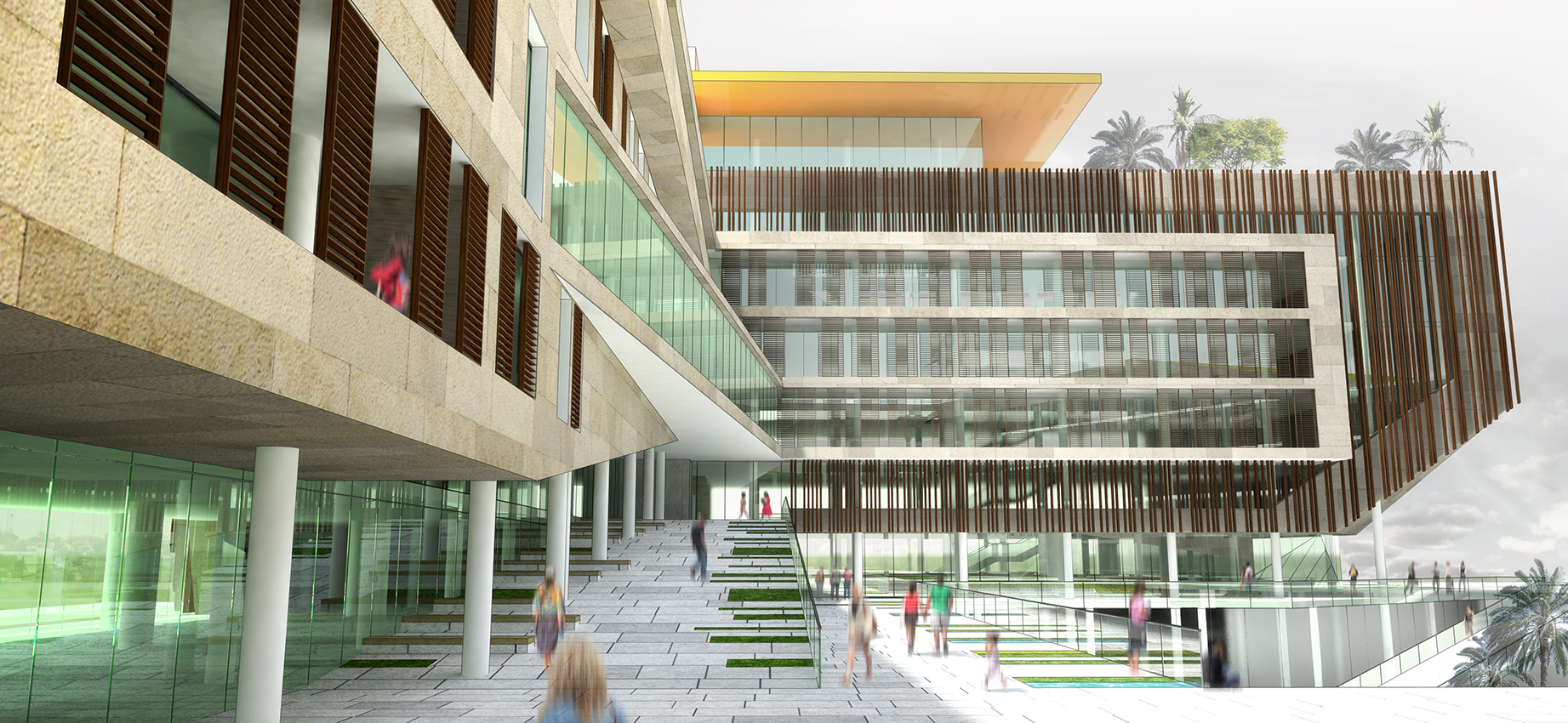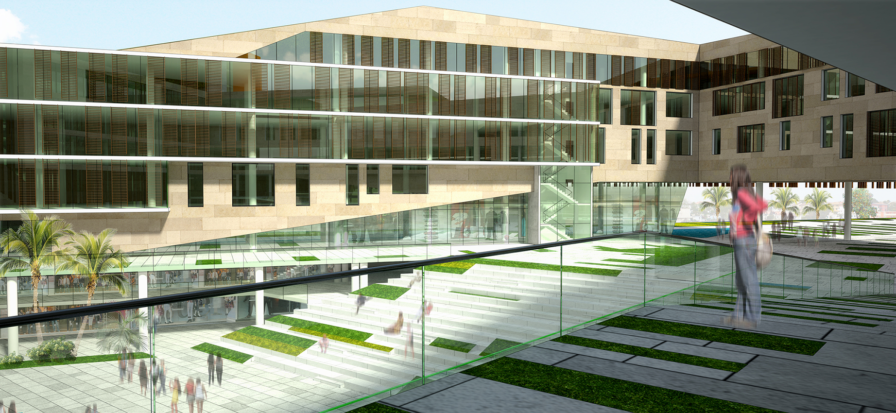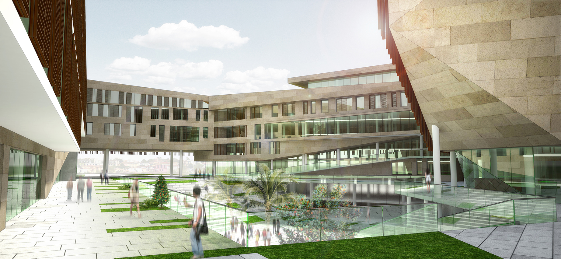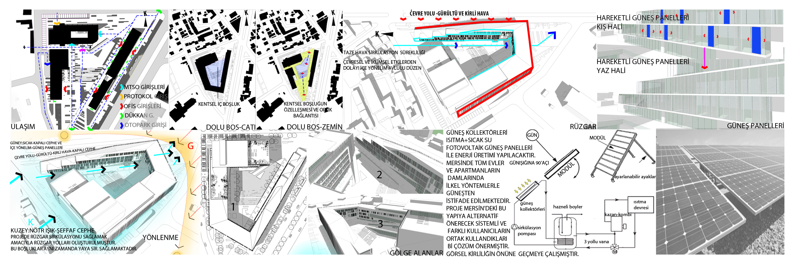 Kendi içine yönelerek, bir avlu etrafında şekillenen projede uygun geçişlerle rüzgar sirkülasyonu sağlanmış, böylelikle pasif yöntemle avlu ses, gürültü ve kirli havadan arındırılmış peyzaj, amfi, oturma alanları, gölgelik alanlarla desteklenmiştir.