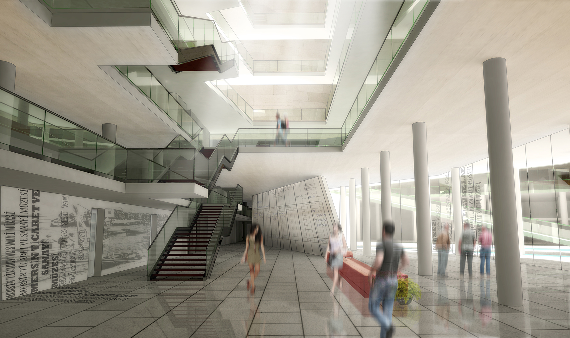 Projenin ana fikri göçük, alt avlu, üst avlu ve kısmen bunun çevresinde gelişen kütle ve çevre yoludur. Yaya yolu hariç tüm yollara sırt çevirerek kendi içinde düşünülen serin, sessiz, temiz havalı, yansıma havuzları ve yeşil peyzajı olan, alt ve üst avlulara yönelmiştir. 2 ayrı kotta çözülen avlu, bir amfi ile birbirine bağlanmıştır. Bu amfide açık hava gösterileri konser sinema vb. etkinlikler düzenlenecektir. Amfinin çevresinde boylu boyunca kütle uzanır. Böylece dışarıya kapalı korunaklı (kapalı salon gibi) bir iç mekan elde edilir. Amfi, müze konferans salonunun da bulunduğu sosyal aksın üzerinde yer alır ve amfi ile beraber alt avluyu sosyokültürel bir iç mekana dönüştürür.